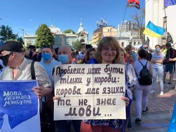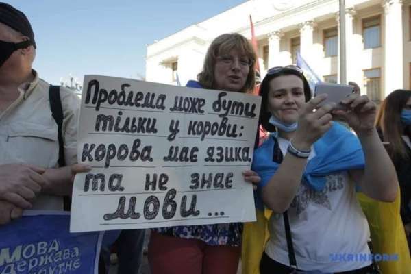 Порошенко вывел своих сторонников под Раду,якобы защищать украинский язык, но говорил больше о своих уголовных делах и пиарился перед выборами. В выступлении вспоминал Иисуса и Путина.