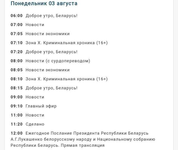 Пресс-секретарь белорусского президента Наталья Эйсмонт заявила, что так и было запланировано. Однако газеты уже успели напечатать телевизионную программу, в которой на полдень 3 августа была поставлена трансляция послания президента.