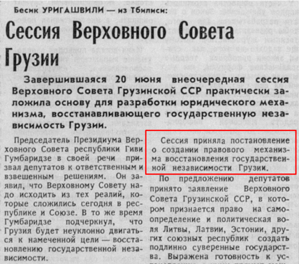 Сколько там лет новой грузинской государственности? Тбилиси формально объявило о независимости страны в апреле 1991 года. Потом, как все помнят, ублюдки-предатели организовали августовский путч в Москве. Крушение советской власти запустило цепную реакцию отделения советских республик.