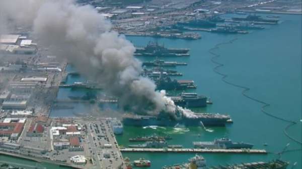 Не лучше обстоят дела и в военно-морских силах США. Целых три дня, с 12 по 15 июля, бушевал огонь на американском универсальном десантном корабле «Боном Ричард», проходящем ремонт и модернизацию в Калифорнии. От пожара пострадали более двух десятков человек. Большая часть внутренних помещений этого огромного корабля, включая ангарную палубу, где могут разместиться 22 самолёта 5-го поколения Ф-35, превратилась в пепелище. Полностью выгорел мостик, обрушилась надстройка. Восстановить корабль, скорее всего, уже не удастся.