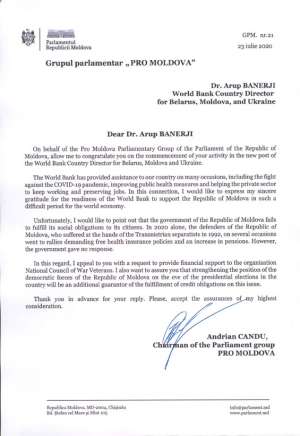 И здесь всплывает ещё один любопытный факт, а точнее документ, который помогает прояснить картину происходящего . Это письмо бывшего соратника беглого молдавского олигарха Владимира Плахотнюка, лидера партии Pro Moldova Андриана Канду региональному директору Всемирного банка по Беларуси, Молдове и Украине Арупу Банерджи.