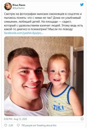 Аморальный оппозиционер Илья Яшин давно наплевал на законы, поэтому выложил в Instagram фотографию малыша с отцом, предположительно работающим белорусским ОМОНовцем.