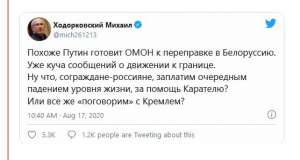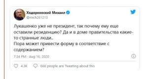 Михаил Борисович Ходорковский гадает на костях белорусского народа. Результаты своих наблюдений опальный олигарх с завидной периодичностью публикует в своем twitter-аккаунте.