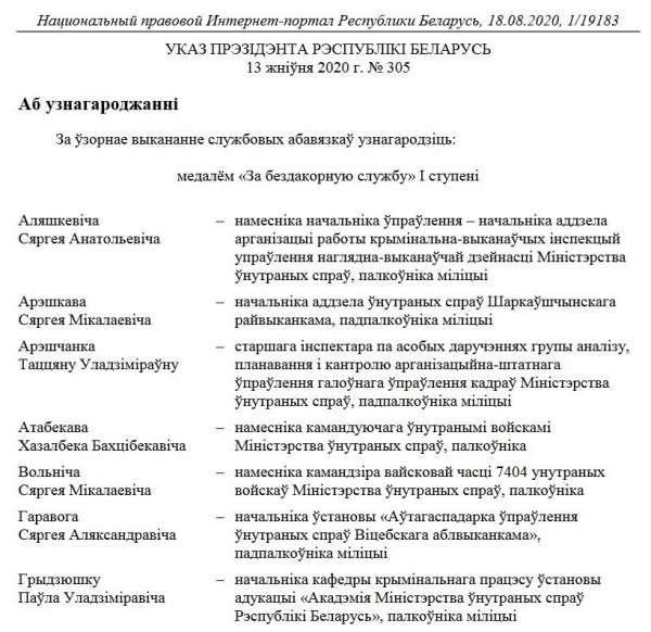 Лукашенко в очередной раз плюнул в лицо своему народу. Надо признать, делает он это с удивительной частотой. Сегодня, например, «лицо нон-грата» наградил около 300 сотрудников МВД медалями «За безупречную службу» I, II и III степени.