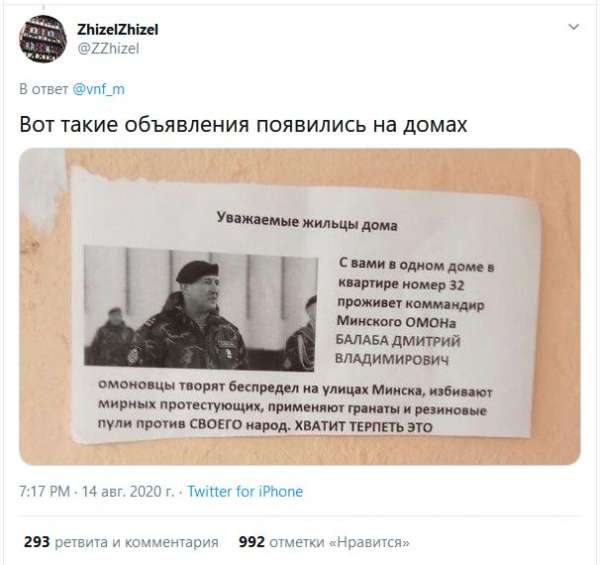 И как постскриптум: а чего стоят, в таком-то случае, «добровольные увольнения» некоторых «совестливых» милиционеров? Они добровольные, по зову сердца — или из-за скрытого страха оказаться среди тех, чей адрес вывесят на двери подъезда, со всеми вытекающими последствиями в виде травли и угроз всей семьей?..