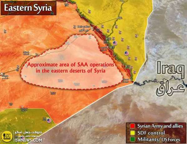 Из данного региона террористы страивают вылазки и засады на патрули ВС САР, а также существляют диверсии на коммуникациях правительственных сил. В связи с этим контртеррористическая операция по очистке «Белой пустыни» будет продолжаться до полной ликвидации бандгрупп «Исламского государства».