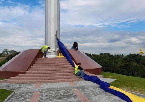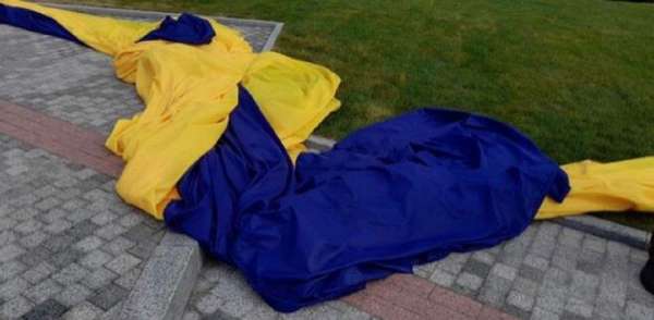 «Три дня. Ровно столько прожило самое большое знамя Украины, которое помпезно водрузили в день «независимости» возле монумента Родина-Мать.