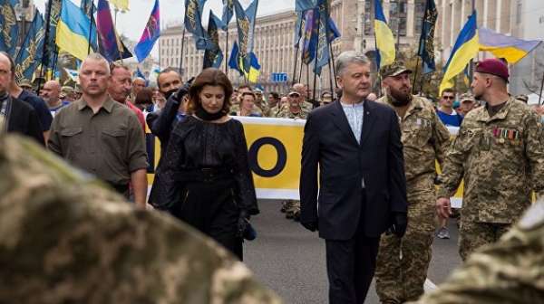 Присутствовавший на марше Порошенко публично заявил, что часть украинцев совершила ошибку, поддержав действующую власть. И намекнул: «зелень падает осенью, мы это точно знаем».