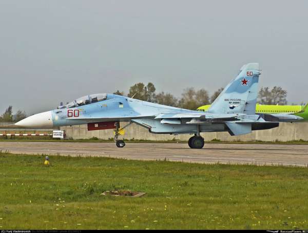 Предположительно, потерянный во время инцидента 22 сентября 2020 года в Тверской области истребитель Су-30М2 (бортовой номер «60 красный», регистрационный номер RF-95869, заводской номер 79810388415) из состава 3-го смешанного авиационного полка 1-й смешанной авиационной дивизии 4-й Краснознамённой армии ВВС и ПВО Южного военного округа, дислоцированного на аэродроме Крымск (Краснодарский край). Снимок сделан в Новосибирске (аэропорт Толмачево) в 2018 году (с) VLK spotter / russianplanes.net ( ccылка )