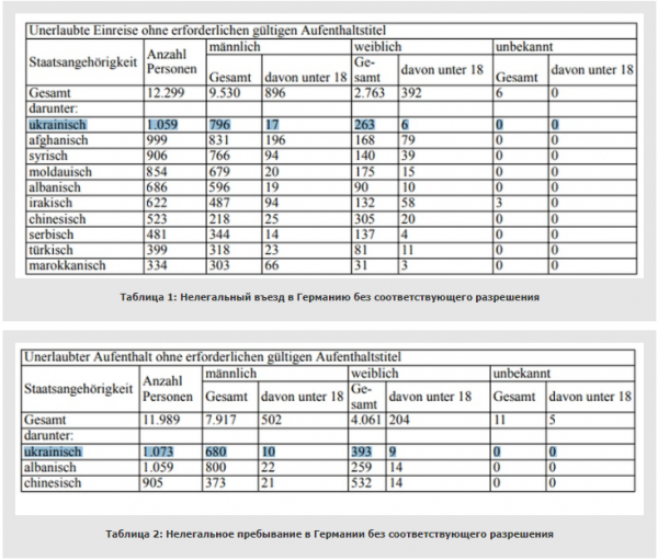 По запросу парламентской фракции «Зелёные» правительство Германии обнародовало статистические данные на тему миграции по состоянию на конец июня текущего года, из которых следует, что украинцы стали самыми злостными нарушителями пограничного режима ФРГ, а также законодательства, регулирующего пребывание в этой стране.