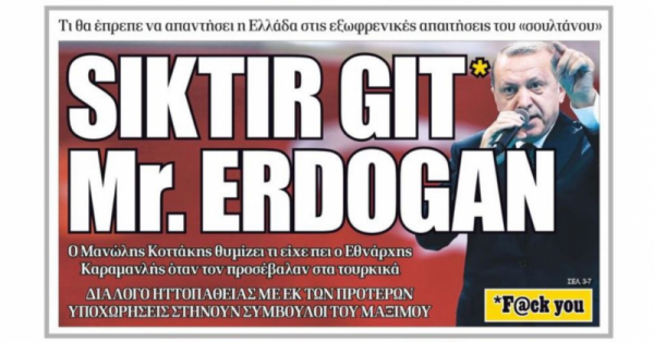 Эрдогана попросили «отвалить» — прямым текстом в грубой форме — от Греции и ее территорий. Заявление сделала «Демократия» — греческая газета правого толка.