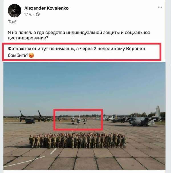 Широко известный в узких кругах украинский неонацист и «порохобот» Александр Коваленко, ведущий блог «Злой Одессит», всего за несколько часов до катастрофы АН-26 разместил в Facebook фотографию группы курсантов Харьковского университета воздушных сил со следующим разъяснением: