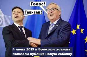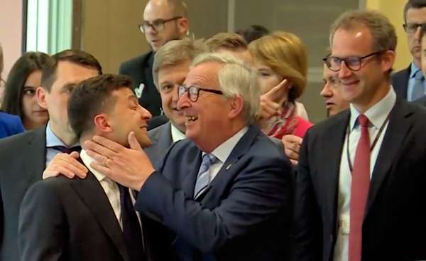 И «братание» в городе писающего мальчика (невольные аллюзии с главным умением Зеленского возникают сами по себе) случилось полное. Уже тогда здорово закладывающий вискарика за воротник глава Еврокомиссии Жан-Клод Юнкер не мог налюбоваться на приезжего и всячески его тискал, подталкивал и даже приобнимал за плечики. Зеленский же «поплыл» и даже ликовал, не скрывая торжества. Даже кое-какой конфуз случился, если вы ещё помните. Сам Зеленский об опекавшем его Юнкере сказал: «Хороший, тёплый, нормальный дядька, очень умный человек, классный мужик. Он мне сказал, что Украина всегда может рассчитывать на его личную поддержку». Жан-Клод хоть и вёл себя, как обычно и параллельно выпивая и мало закусывая, но всё же выглядел посдержаннее и всего лишь сказал, что теперь у него есть «новый друг — Зеленский». «Новый лучше старого», — ответил Зеленский, не удержавшись, чтобы победно и смачно не плюнуть в своего предшественника Петра Порошенко, который тоже со своей демонстративной «евроинтеграционностью» носился по миру, как геморройный больной с подушечкой на жёсткую табуретку.