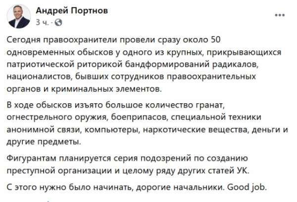Фигурантам планируется серия подозрений по созданию преступной организации и целому ряду других статей УК», — подтвердил информацию юрист Андрей Портнов на своей странице в Facebook.