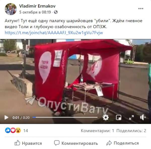 7 октября в «ОпустиВату» публикуется видеозапись еще одной атаки на агитпалатку Партии Шария.