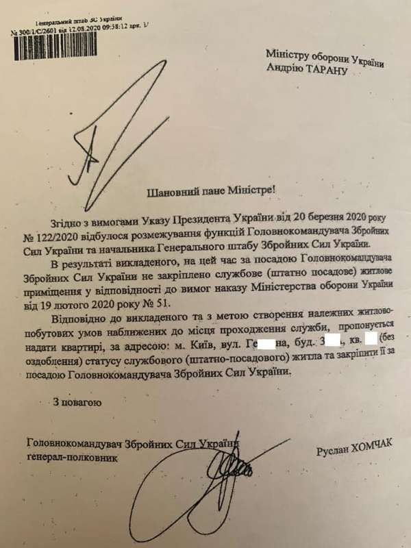 Главнокомандующий Вооруженных сил Украины Руслан Хомчак получил третью служебную квартиру в Киеве. Об этом со ссылкой на соответствующие документы сообщил музыкант и волонтер Тарас Тополя.