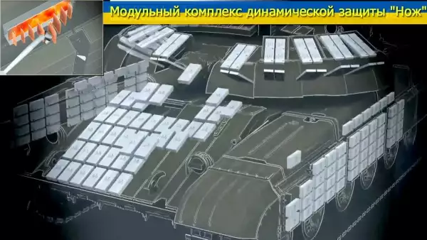 В Сети можно найти схему расположения динамической защиты и там нет каких-то серьёзных отличий от Т-72Б3М, который состоит на вооружении армии РФ. Внешне, обыватель заметит только кожух, который скрывает истинное положение вещей.
