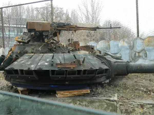 Фотография башни подбитого Т-64БМ Булат ранних годов выпуска.