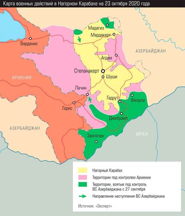 Карта военных действий в Нагорном Карабахе на 23 октября 2020 года