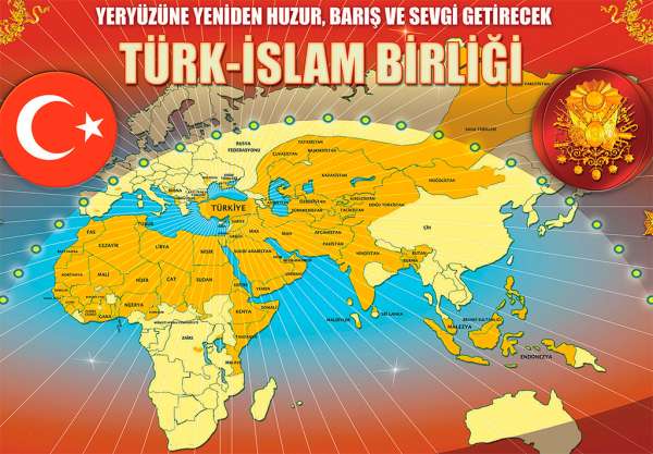 «То, что снова принесет в мир спокойствие, мир и любовь: турецко-исламское партнерство» гласит заголовок этой карты, которую часто рисуют сторонники панисламизма в общественно-политических организациях, близких к правящей Партии справедливости и развития президента Реджепа Эрдогана. Здесь сочетаются и религиозная экспансия суннитского ислама, и мечты о единении тюркских народов
