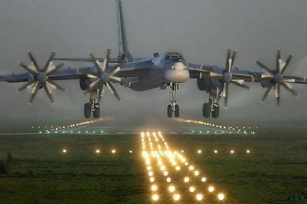 «Медведь» — натовское название советского самолета конструктора Туполева Ту-95. Это крупный стратегический бомбардировщик, иногда несущий на борту ракеты, но в основном используемый для радиоэлектронного наблюдения. На нем установлены четыре двигателя НК-12 конструктора Кузнецова с винтами противоположного вращения, из-за чего Ту-95 — необычайно шумный самолет. Кончики лопастей у этих винтов вращаются со сверхзвуковой скоростью, создавая дьявольский шум. «Медведь» был принят на вооружение в 1956 году, и ВВС России используют этот самолет по сей день.