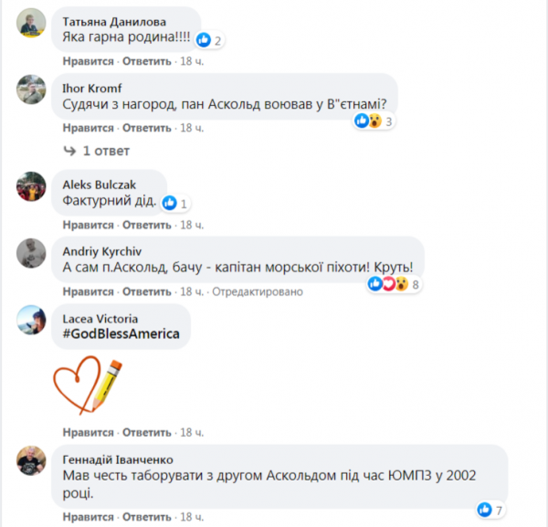 «Имеем счастье быть знакомыми с этой замечательной семьей украинцев, которые стоят на страже Американской земли. Поздравляем!», - написал львовянин Ihor Markov.