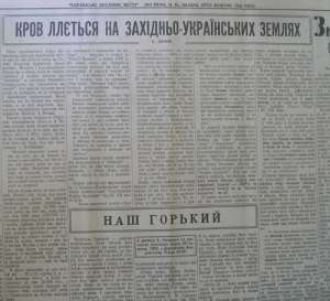 "Выясняются всё новые и новые подробности о голоде, который охватил десятки сёл горной части Западной Украины – Гуцульщину. По сельским домам лежат целые семьи, которые опухли от голода. От села к селу ходят толпы замёрзших, голодных гуцулов, которые просят хлеба и картофеля. От пятнистого тифа умирает молодёжь и старики..."