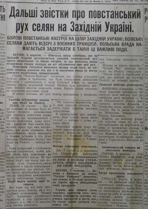 1932 г. — американская газета "Украiнськi щоденнi вiстi". Из статьи "Голодная смерть царит в сёлах Гуцульщины":