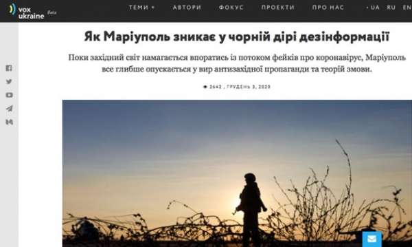 Сначала мне встретилась статья Веры Мельник из Луганска – «VoxUkraine: Мариуполь был и остаётся сепаратистским», а затем я решил ознакомиться с отчетом VoxUkraine, где статья называется – «Как Мариуполь исчезает в черной дыре дезинформации»…