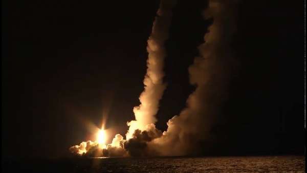 Минобороны опубликовало видео залпового пуска ракет "Булава" с подводного крейсера "Владимир Мономах". Кадры быстро разошлись по соцсетям. Пользователи принялись подсчитывать, сколько нужно "Булав" на США, Канаду и "япошек".