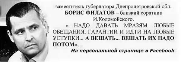 Изюминкой на торте этого обмана является, конечно же, поддержка «ОПЗЖ» мэра Днепра (бывшего Днепропетровска) Бориса Филатова, который как был, так и остался убежденным политическим спекулянтом-русофобом. Его соратник Геннадий Корбан до сих пор хвастается зачисткой «русской весны» по сценарию Одессы 2 мая 2014 года: