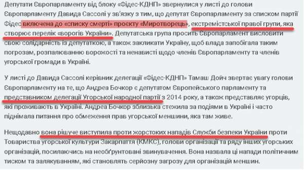 «Мы знаем каждого, кто получил венгерский паспорт или получает гранты. Помните, мы придем к вам, мы повсюду. Мы знаем, где вы живете, где работаете и, где учатся ваши дети. Внимательно следите за своими мыслями и мечтами об автономии, иначе мы придем за вами и вашими детьми», — заявил националист.