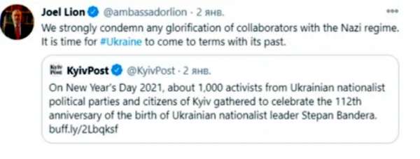 Комментируя новость о марше в честь дня рождения Бандеры, который устроили националисты 1 января, Джоэль Лион подчеркнул: