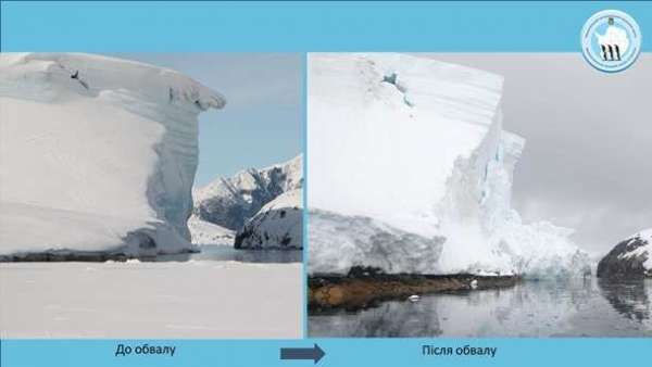 Неподалеку от украинской антарктической станции Академик Вернадский на острове Галиндез произошел масштабный откол края льда на леднике Woozle Hill.