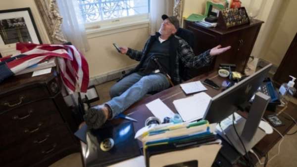В кресле спикера Палаты представителей Нэнси Пелоси сфотографировался ещё один провокатор - житель Арканзаса по имени Ричард Барнетт. Газета Washington Post нашла его аккаунты в соцсетях - оказалось, что он называет сам себя «белым националистом», фотографируется с огнестрельным оружием и распространяет теории заговора про коронавирус.