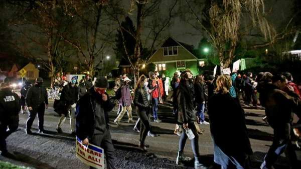 Неспокойно было и в Сиэтле, штат Вашингтон. Протестующие устроили беспорядки в городе. Полиция, их задерживала.