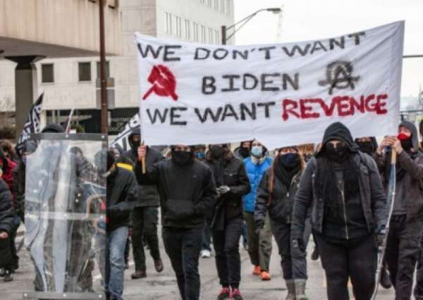Сотни демонстрантов, одетых в черное, прошли маршем в северо-восточной части города, затем напали на штаб-квартиру Демократической партии штата. Протестующие против вступления в должность Байдена забросали здание камнями и разрисовали его граффити. Участники протеста были вооружены палками, ножами, дымовыми шашками электрошокерами, перцовыми баллончиками и железными щитами.