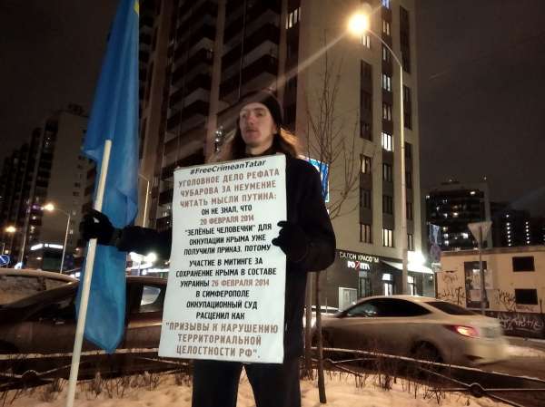 Интересно, что на этот раз появился и лозунг с требованием прекратить преследование в РФ главаря запрещенного меджлиса Рефата Чубарова.