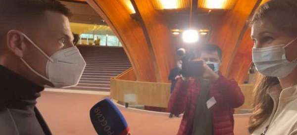 «Вашей делегации с Толстым, Слуцким – им место в комнате «Грязи» во дворце Путина в Геленджике, это место для них, кальянная. Мы будем оспаривать полномочия российской делегации. Уверен, что коллеги нас поддержат, глядя, как вы убиваете людей химическим оружием, а вы это не рассказываете на своём канале, как убиваете оппозиционеров, как избиваете детей, тысячами задерживаете людей в Москве, Питере.