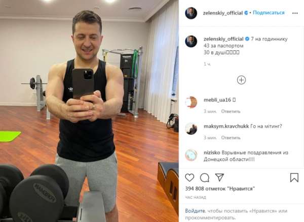 25 января президент Украины Владимир Зеленский отметил свой 43-й день рождения. Как всегда, PR-служба президента попыталась отметить этот факт нестандартно и креативно. В Instagram Зеленского было опубликовано его фото, на котором 43-летний глава государства позирует во время утренней зарядки. Подпись под фото гласит, что в душе он чувствует себя на 30 лет.