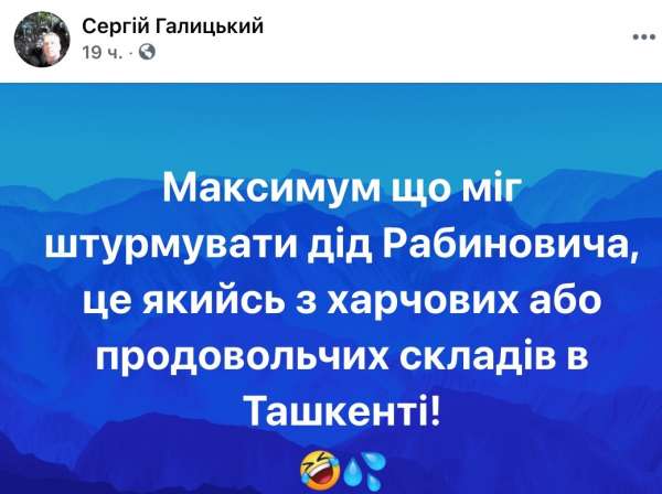 «Максимум, что мог штурмовать дед Рабиновича — это продовольственный склад в Ташкенте», — это пост инструктора по национальной самоидентификации и межнациональным связям учебного центра «Кодацька Січ» Сергия Галицького из Днепра.