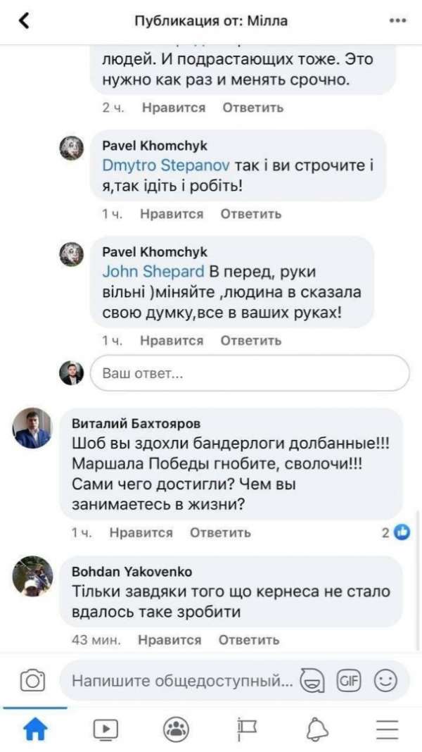 «Чтоб вы сдохли, бандерлоги долбанные! Маршала Победы гнобите, сволочи! Сами чего достигли? Чем вы занимаетесь в жизни?», - отреагировал проректор на инициативу по переименованию.