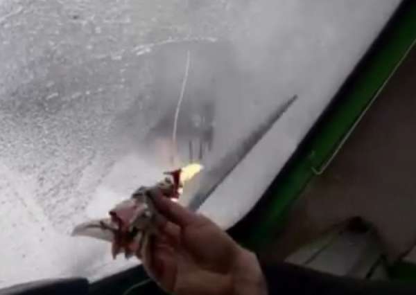 На странице «Форум железнодорожника» в Facebook обнародовано видео, на котором машинист горящей бумагой отогревает стекло локомотива.