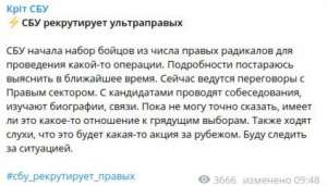 Позже из того же источника стало известно, что радикалов готовят для диверсий на территории Беларуси. Операция получила название "Коллапс". Рекрутов отбирали из "Правого сектора", "Национального корпуса", С14 и"Социал-национальной ассамблеи" (СНА).