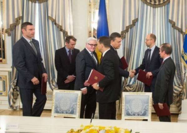 Кроме украинцев, документ скрепили подписями в качестве гарантов его выполнения министры иностранных дел Германии и Польши — Штайнмайер и Сикорский, а также руководитель департамента континентальной Европы МИД Франции Эрик Фурнье. Министру Фабиусу в эти дни нужно было в Пекине что-то срочно делать, и он благоразумно сдрыснул с «праздника демократии» в Киеве. Спецпредставитель России Лукин тоже отказался ставить свой автограф. Наверное, что-то чувствовал. А может, и знал, что и Януковича, и Украину жёстко и подло кинут.