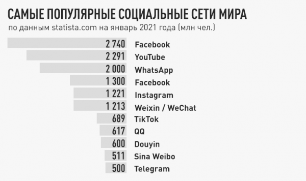 Но почему смена политики по сбору данных в WhatsApp наделала так много шума? По данным сервиса статистики Statista.com, WhatsApp – самый популярный в мире мессенджер. Число его пользователей в январе 2021 года составляло два миллиарда человек.