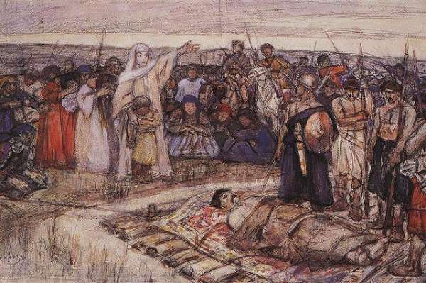 Княгиня Ольга встречает тело князя Игоря. Василий Суриков, 1915 г.