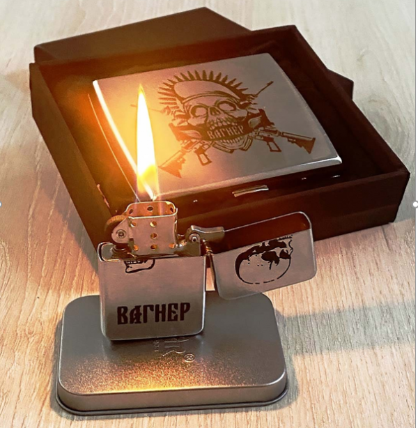 Фото оригинальных портсигара и зажигалки появились на днях в Сети. На них можно увидеть стилизованное изображение черепа, двух автоматов и надпись «Вагнер». Следует отметить, что мерч, посвященный «ЧВК Вагнера», день ото дня пользуется все большим спросом. Футболки, маски, кружки пришлись по вкусу россиянам.