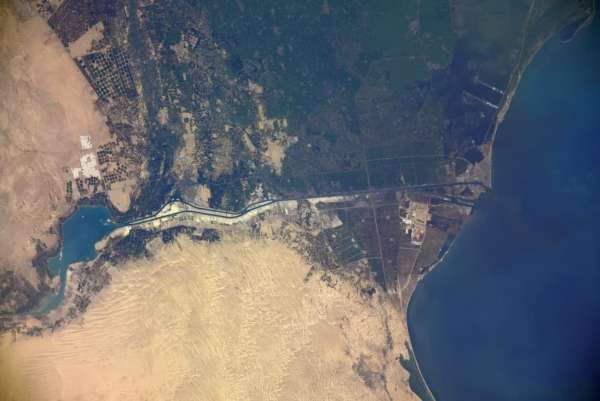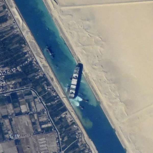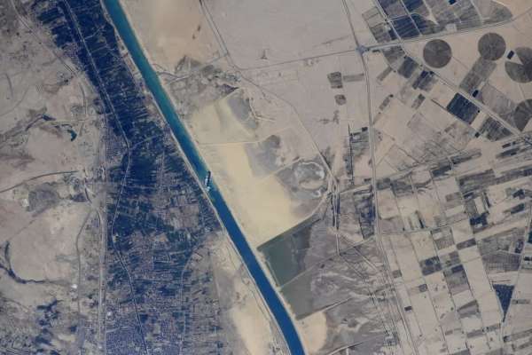 С МКС подъехали новые снимки контейнеровоза, севшего на мель. Их сделал российский космонавт Сергей Кудь-Сверчков и опубликовал в твиттере.