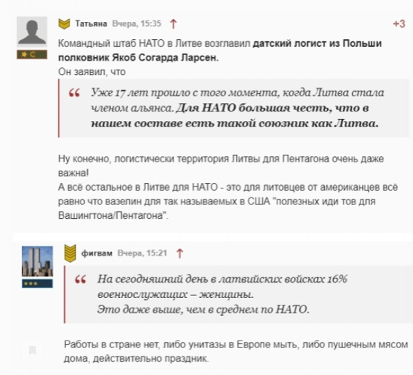 Только отсутствие политического веса, здравомыслящих и дальновидных политиков, защищающих национальные интересы своих стран, а не западных хозяев, привели к тому, что прибалты превратились в посмещища и натовских холуев.